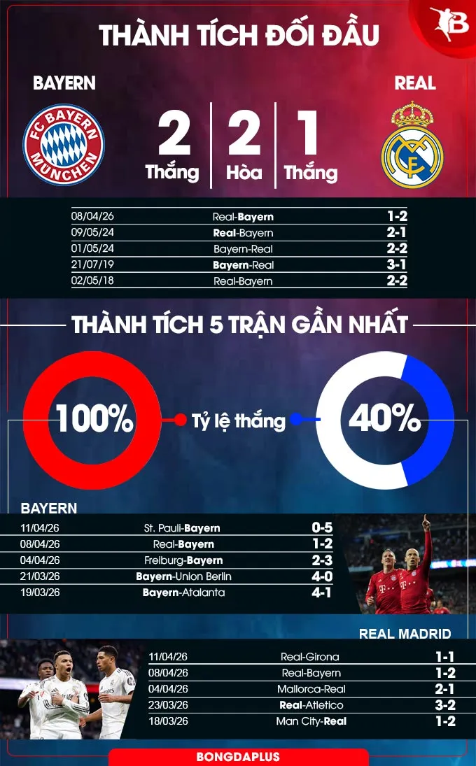 Với lợi thế sân nhà, phong độ cao và tâm lý áp đảo sau chiến thắng lượt đi, Bayern Munich hoàn toàn có cơ sở để tin vào một kết quả tích cực. Real Madrid, dù bản lĩnh, có thể sẽ gặp khó khăn trước sức ép từ Allianz Arena.
