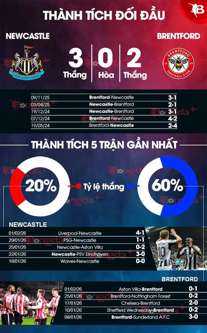 Chuyên gia Oliver Thomas (Sportmole) nhận định, dù lịch sử không ủng hộ, nhưng Brentford đang có phong độ vượt trội so với chủ nhà Newcastle. Việc được gặp một đối thủ đang trong cơn khủng hoảng kết quả là cơ hội vàng để đội khách rời sân với điểm số.