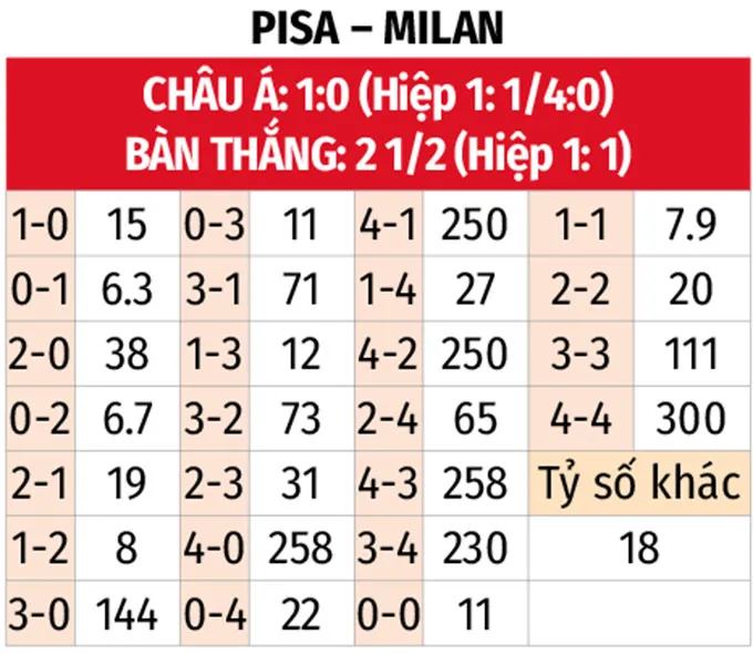 Lối chơi chủ động và khả năng ghi bàn sớm của AC Milan trong các trận gần đây khiến họ trở thành ứng viên sáng giá cho kèo thắng cả hiệp 1 lẫn toàn trận. Bên cạnh đó, thống kê về số pha phạt góc từ cả hai đội cũng hứa hẹn một lựa chọn "Tài" hấp dẫn.